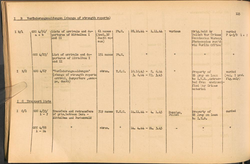 Band 1: Catalogue of Concentration Camp Records held by the International Tracing Service of the Allied High Commission for Germany, Volume I
