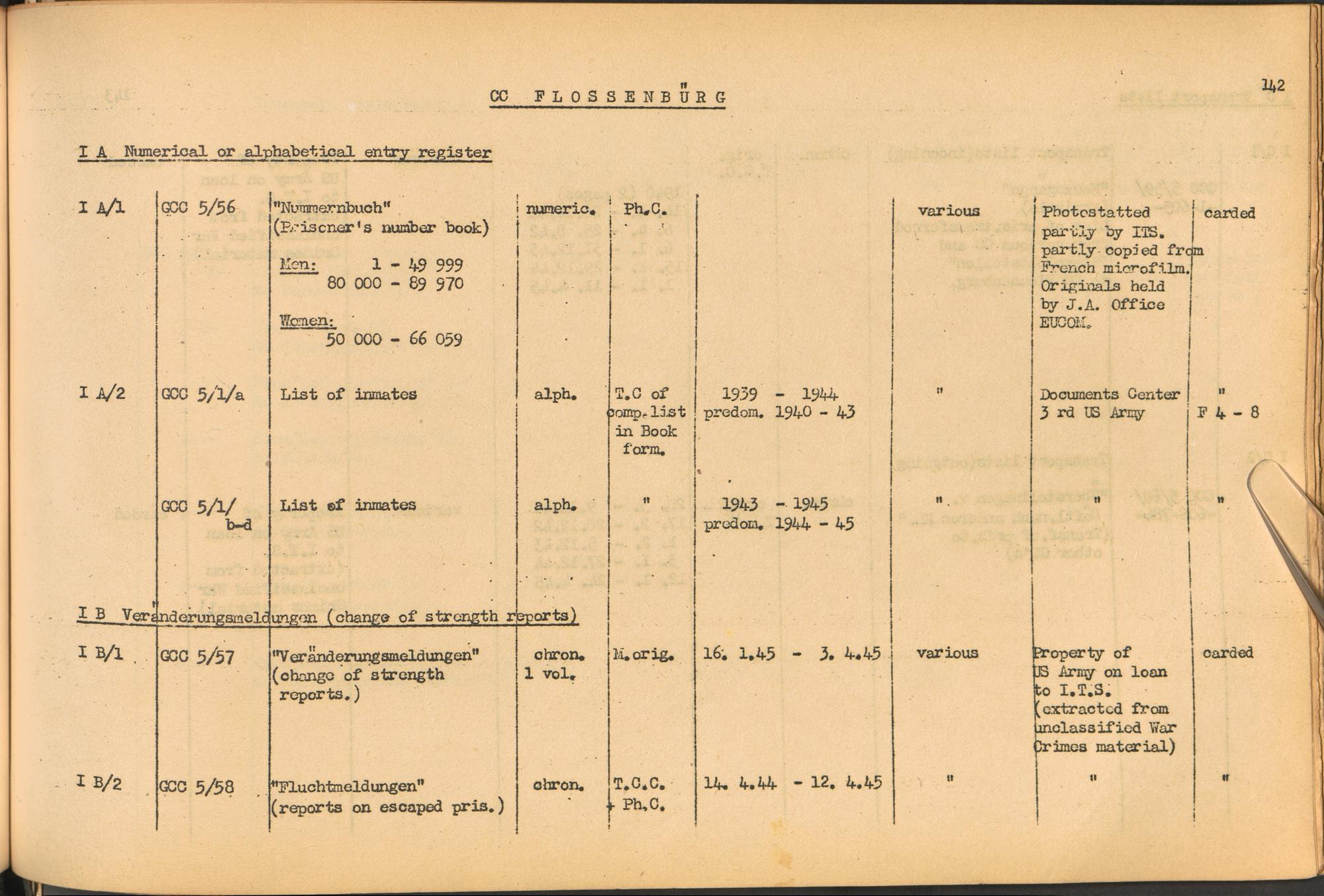 Band 1: Catalogue of Concentration Camp Records held by the International Tracing Service of the Allied High Commission for Germany, Volume I