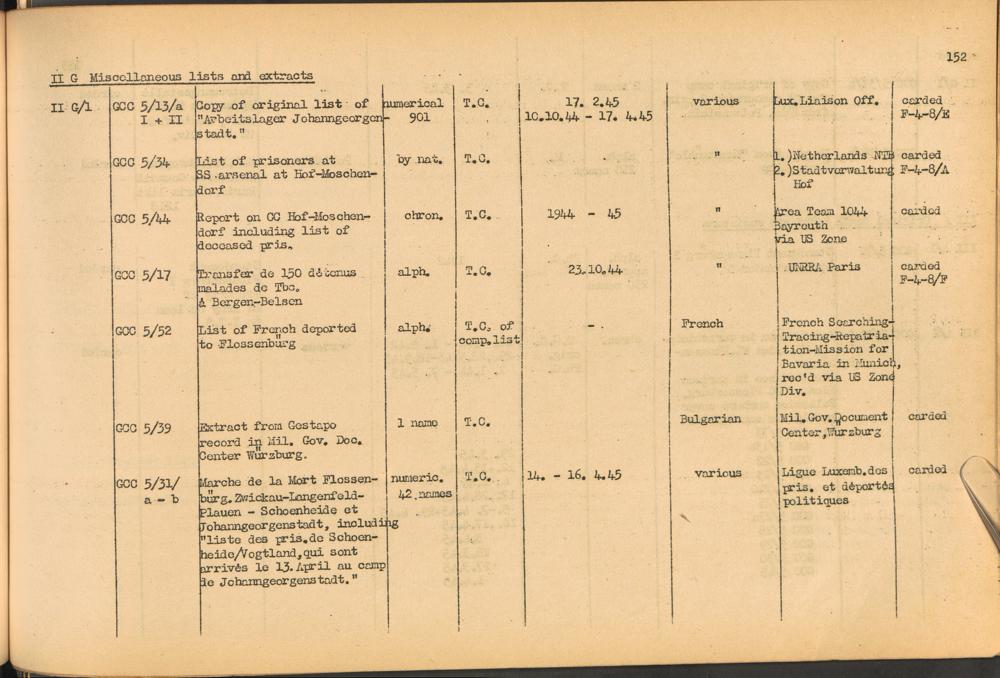 Band 1: Catalogue of Concentration Camp Records held by the International Tracing Service of the Allied High Commission for Germany, Volume I