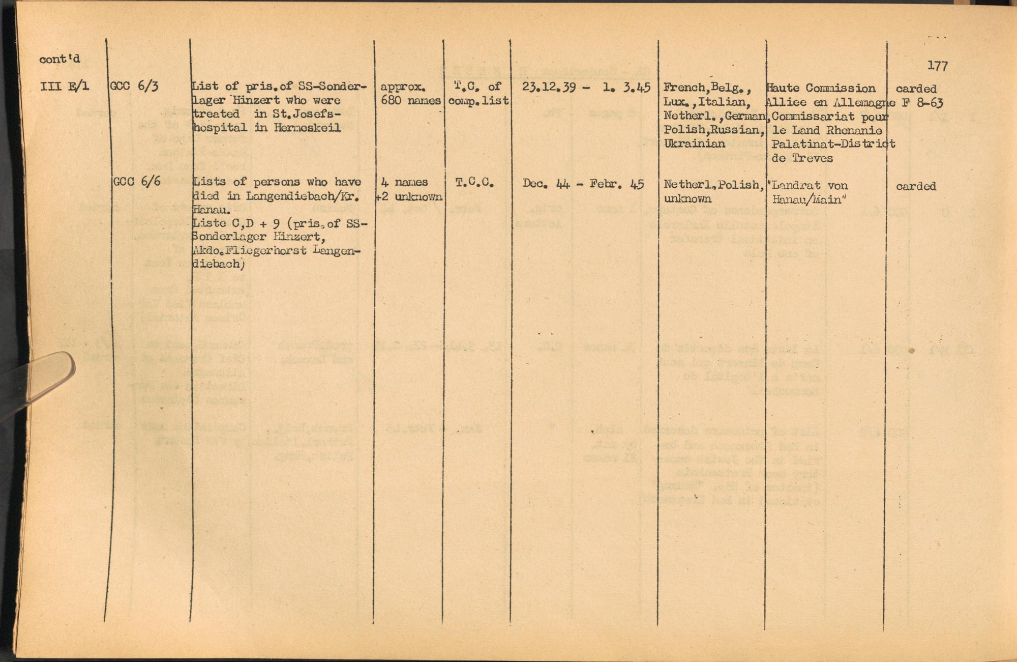 Band 1: Catalogue of Concentration Camp Records held by the International Tracing Service of the Allied High Commission for Germany, Volume I