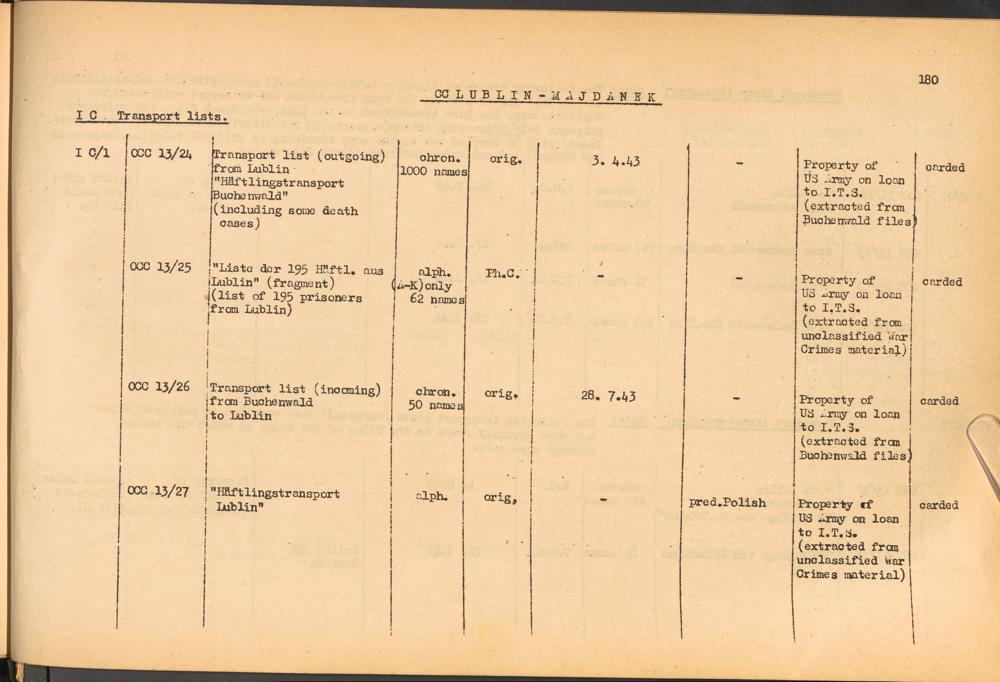 Band 1: Catalogue of Concentration Camp Records held by the International Tracing Service of the Allied High Commission for Germany, Volume I