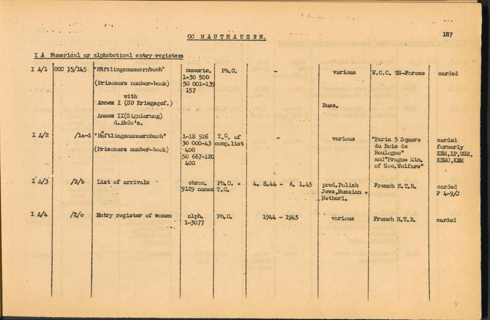 Band 2: Catalogue of Concentration Camp Records held by the International Tracing Service of the Allied High Commission for Germany, Volume II