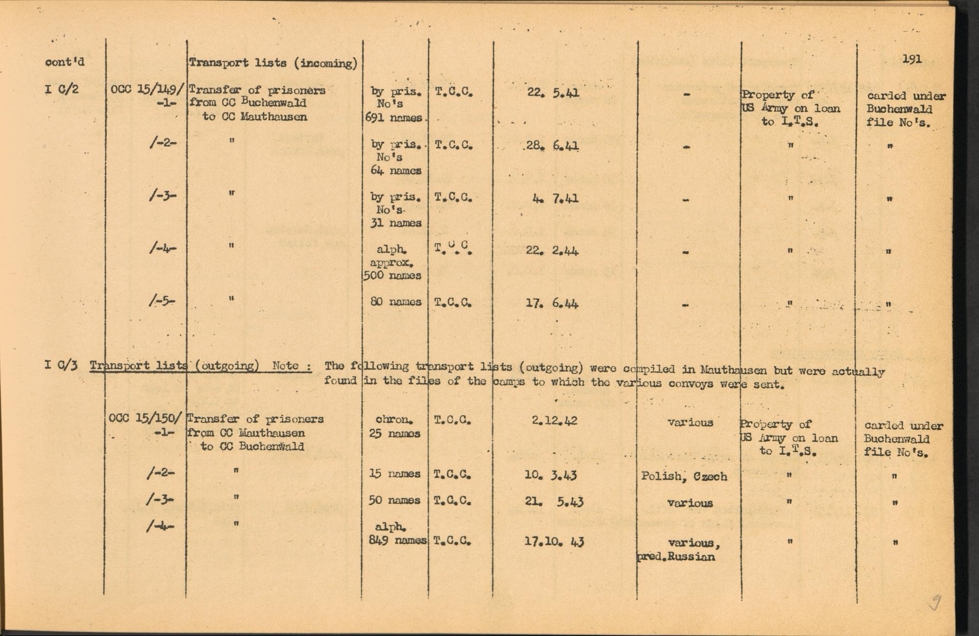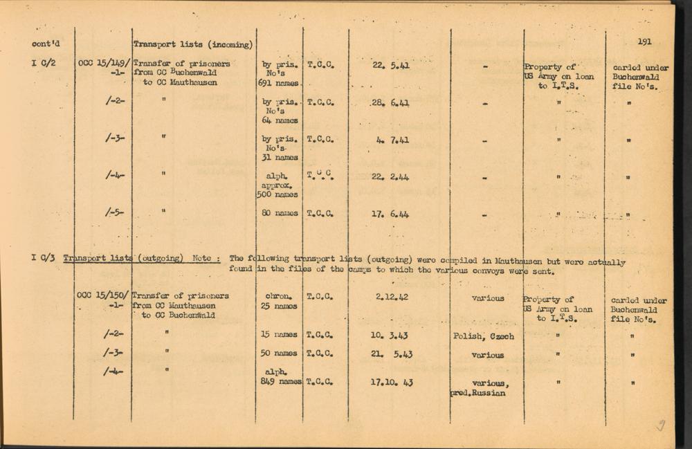 Band 2: Catalogue of Concentration Camp Records held by the International Tracing Service of the Allied High Commission for Germany, Volume II