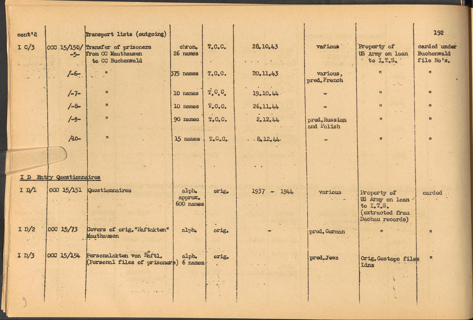 Band 2: Catalogue of Concentration Camp Records held by the International Tracing Service of the Allied High Commission for Germany, Volume II