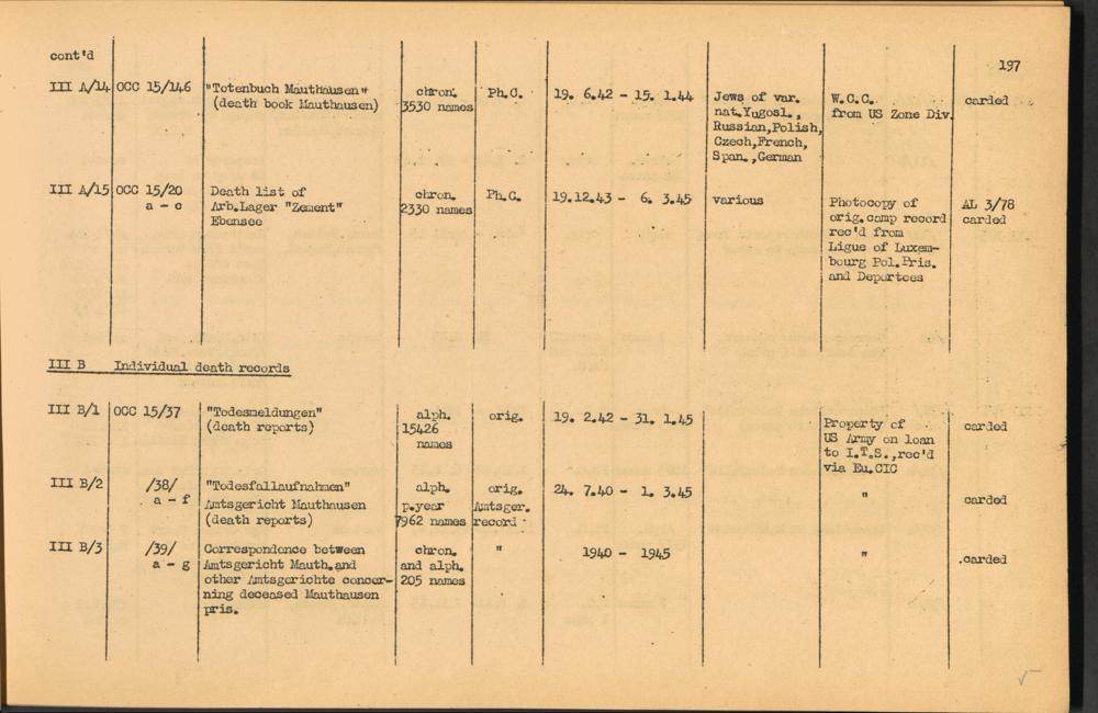 Band 2: Catalogue of Concentration Camp Records held by the International Tracing Service of the Allied High Commission for Germany, Volume II