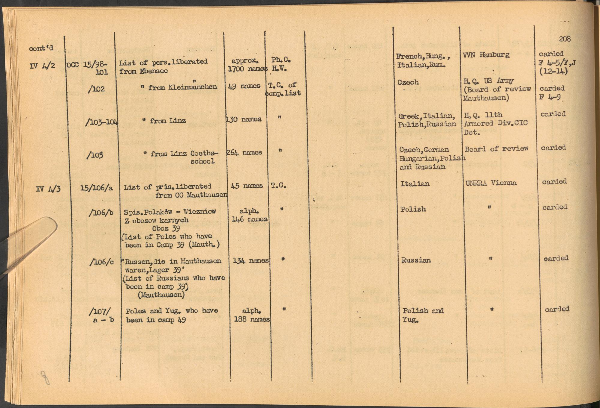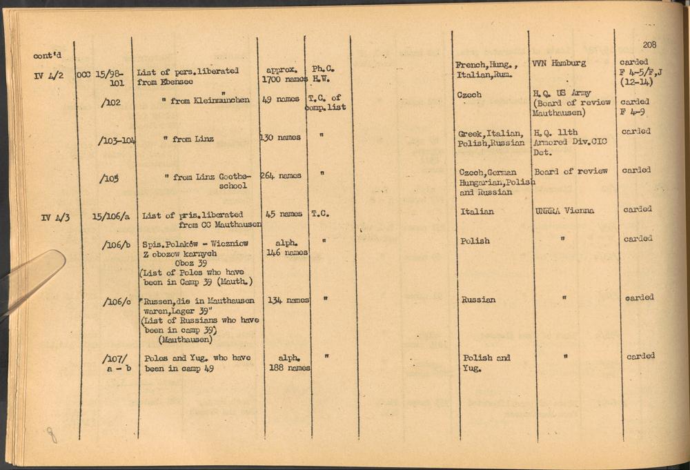 Band 2: Catalogue of Concentration Camp Records held by the International Tracing Service of the Allied High Commission for Germany, Volume II