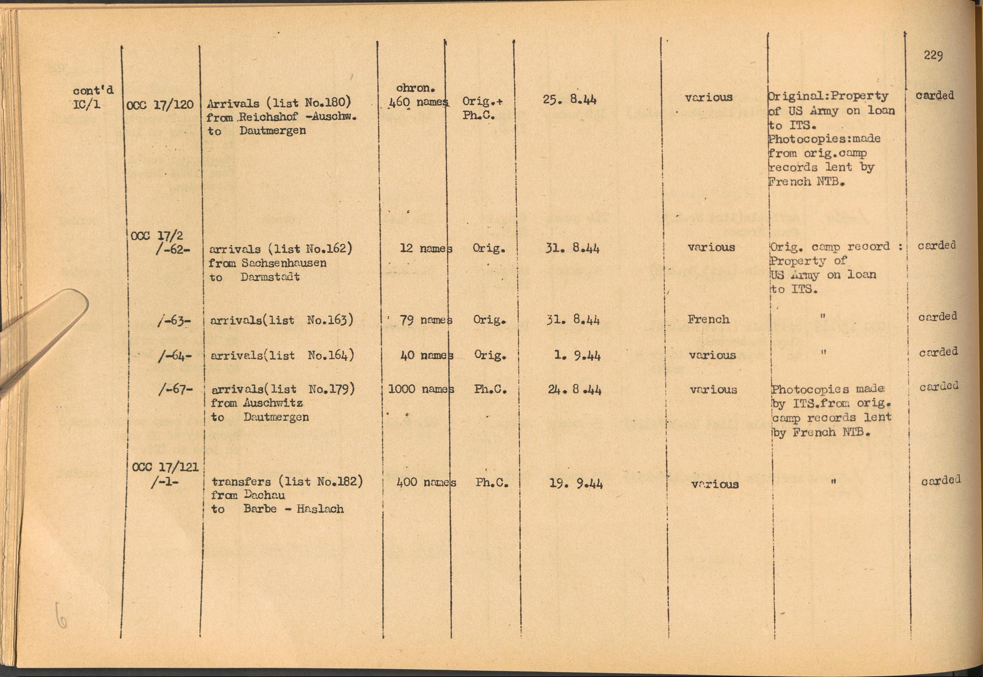 Band 2: Catalogue of Concentration Camp Records held by the International Tracing Service of the Allied High Commission for Germany, Volume II
