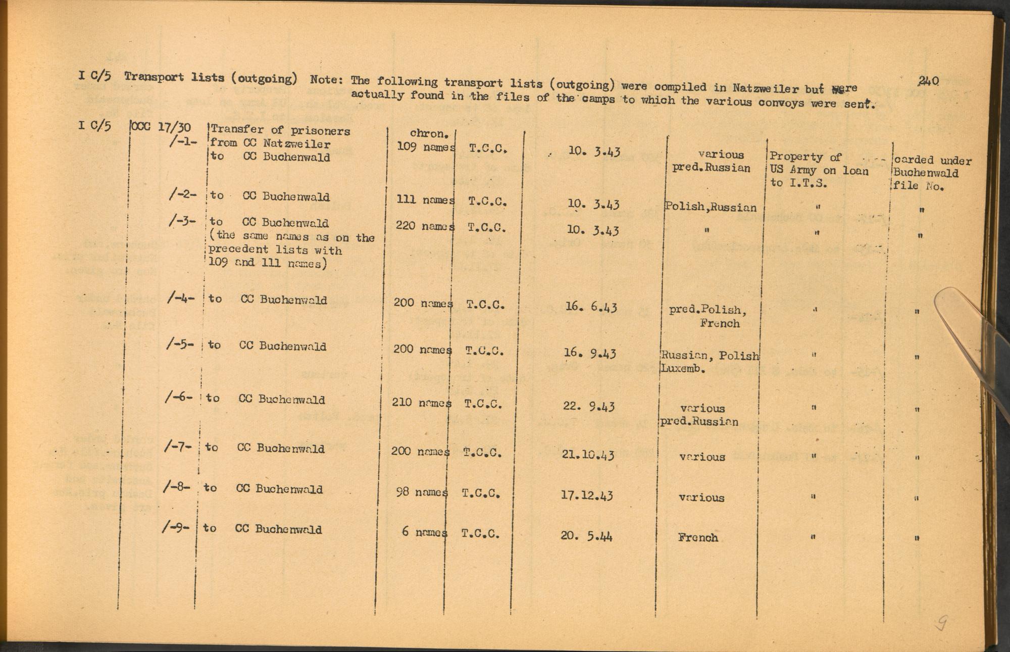 Band 2: Catalogue of Concentration Camp Records held by the International Tracing Service of the Allied High Commission for Germany, Volume II