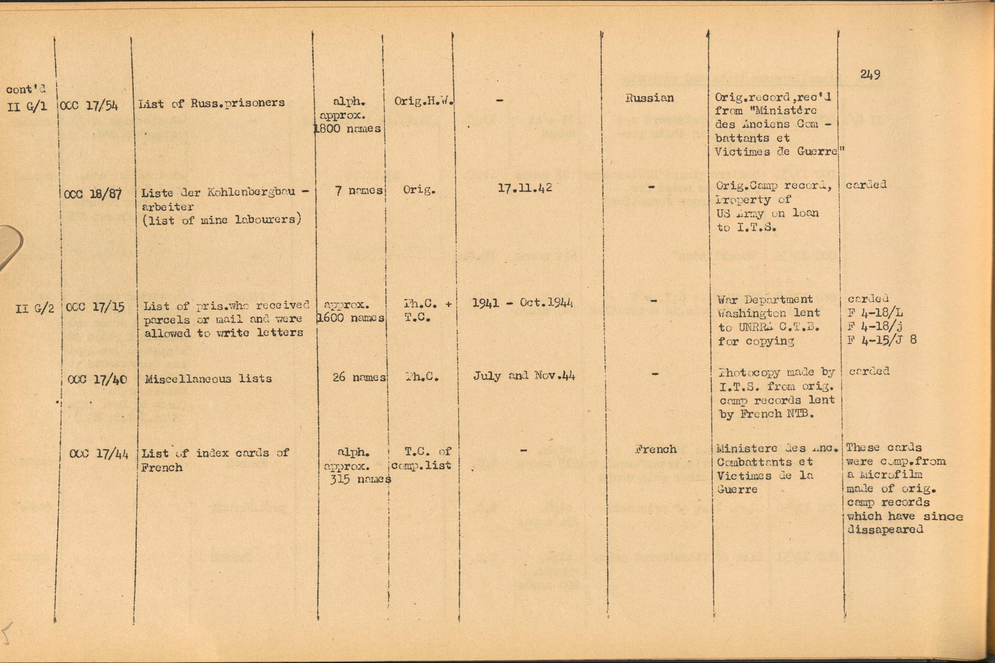 Band 2: Catalogue of Concentration Camp Records held by the International Tracing Service of the Allied High Commission for Germany, Volume II