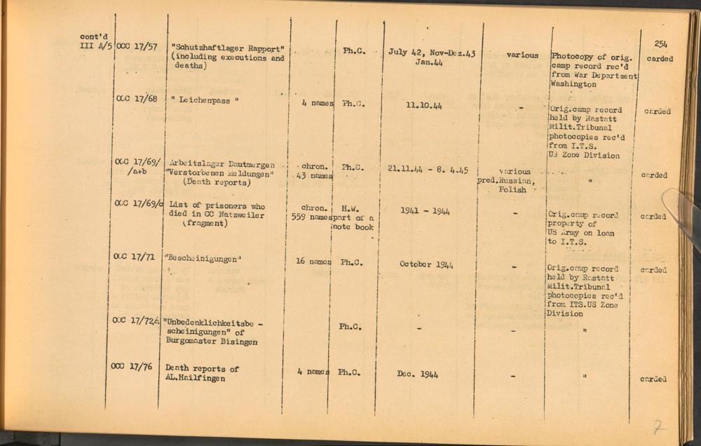 Band 2: Catalogue of Concentration Camp Records held by the International Tracing Service of the Allied High Commission for Germany, Volume II