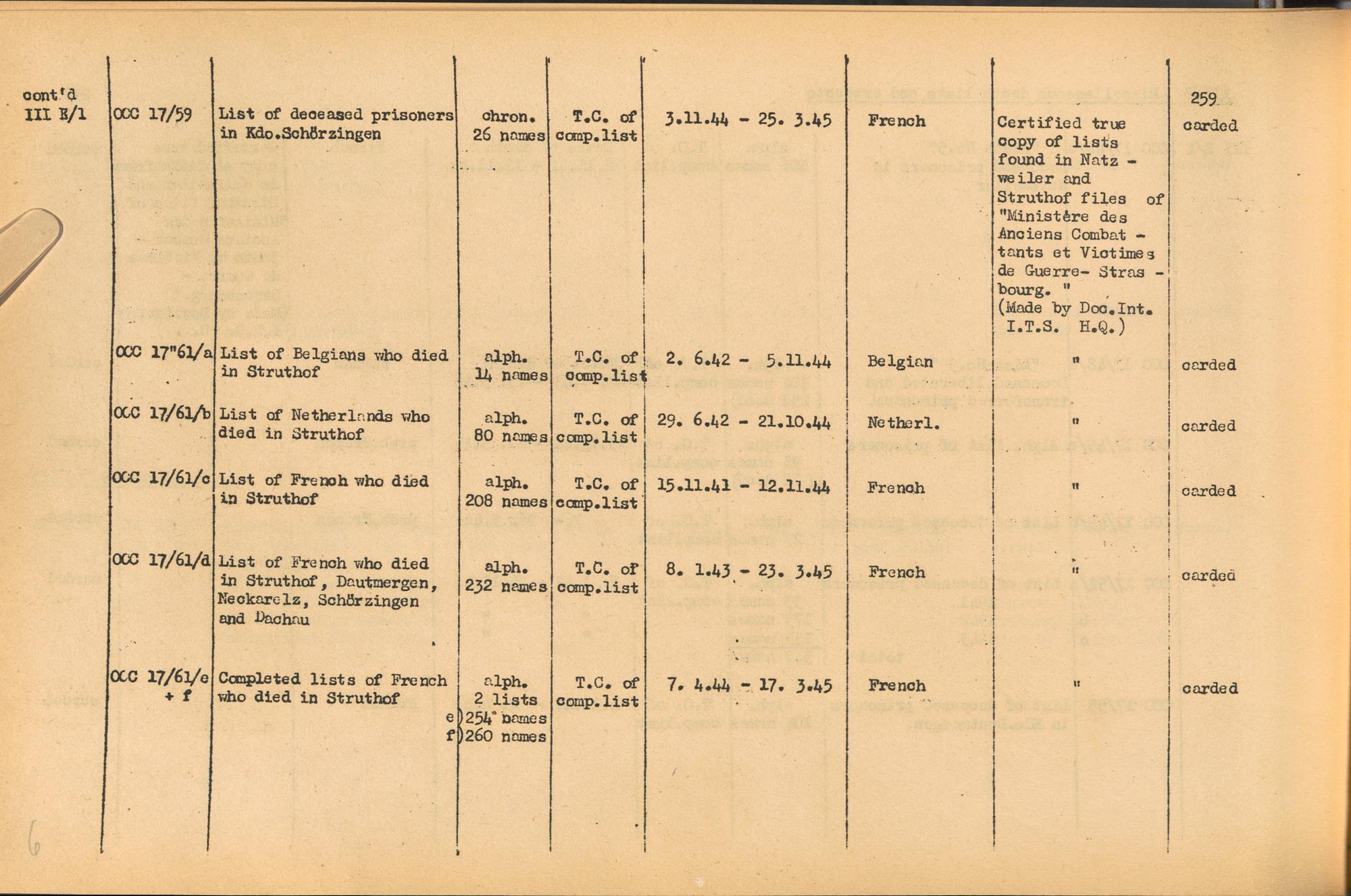 Band 2: Catalogue of Concentration Camp Records held by the International Tracing Service of the Allied High Commission for Germany, Volume II