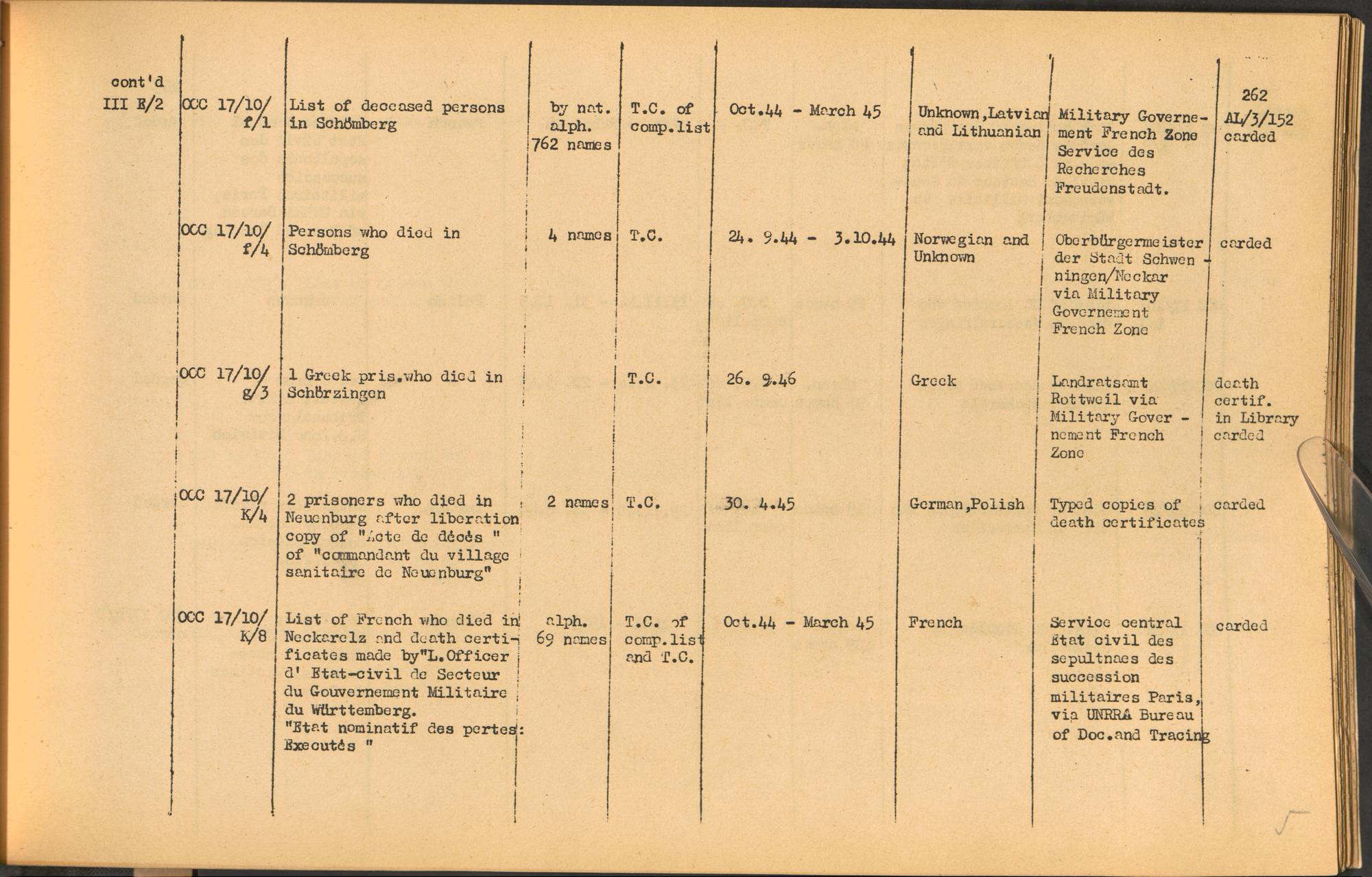 Band 2: Catalogue of Concentration Camp Records held by the International Tracing Service of the Allied High Commission for Germany, Volume II