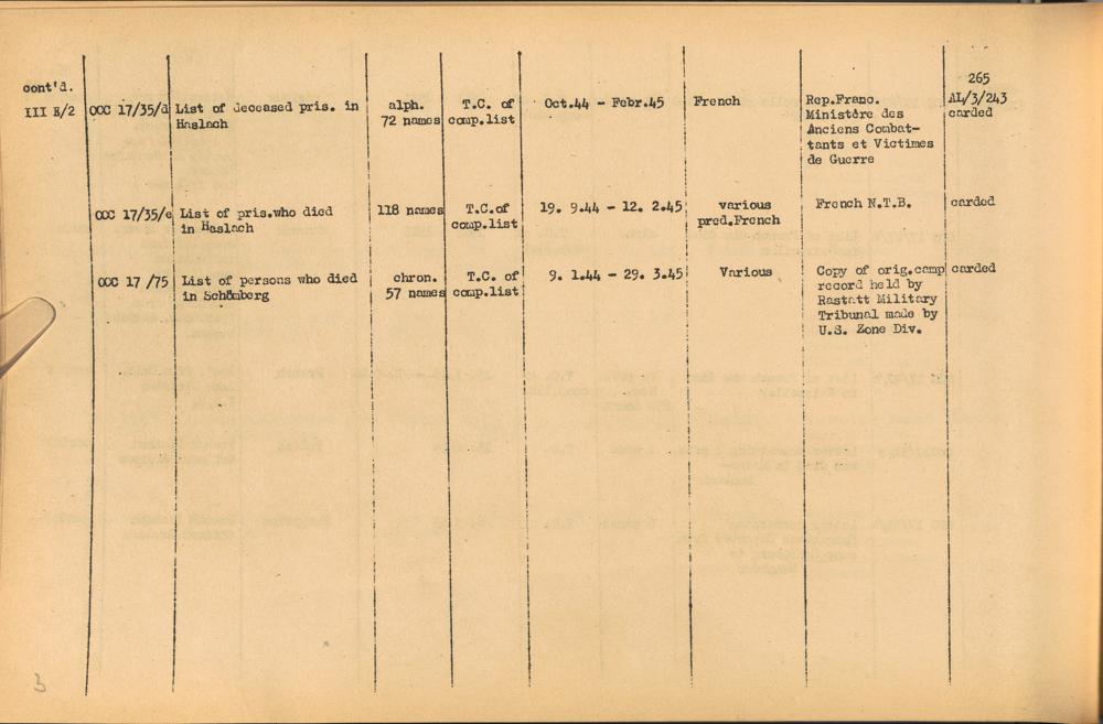 Band 2: Catalogue of Concentration Camp Records held by the International Tracing Service of the Allied High Commission for Germany, Volume II