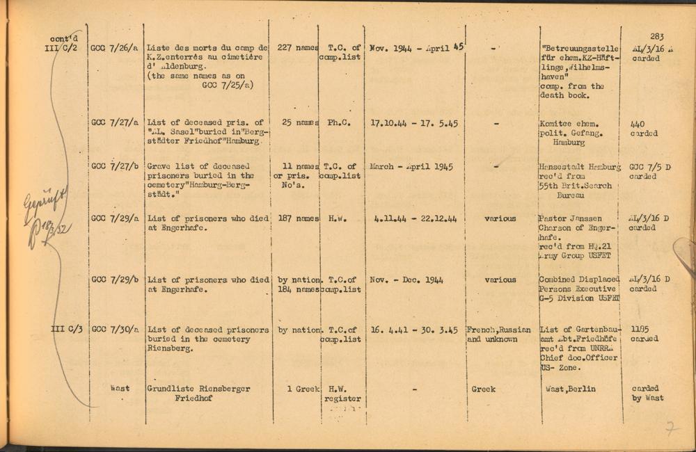 Band 2: Catalogue of Concentration Camp Records held by the International Tracing Service of the Allied High Commission for Germany, Volume II