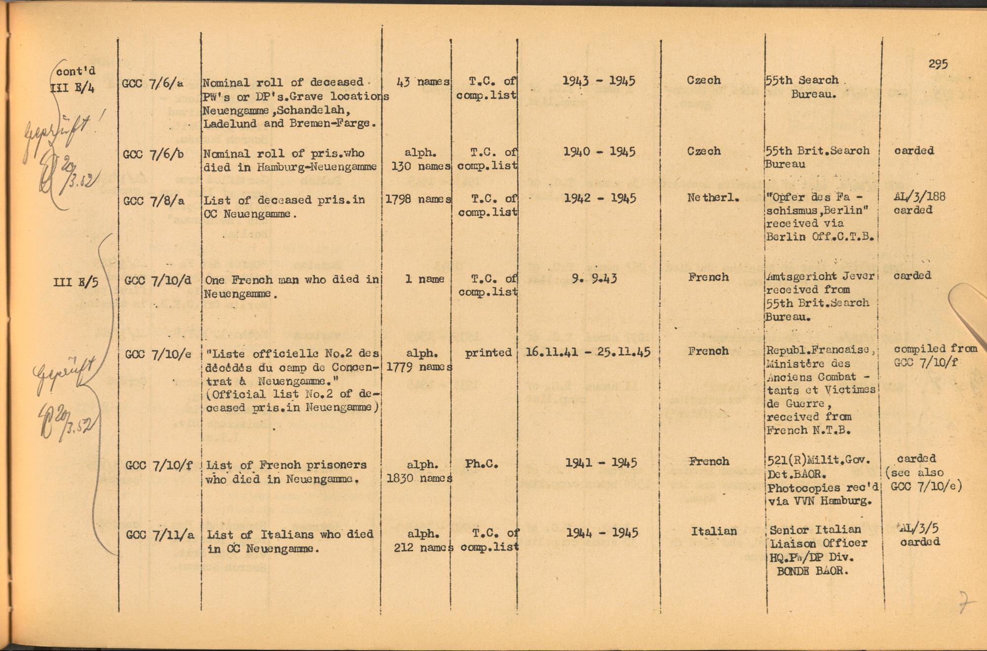 Band 2: Catalogue of Concentration Camp Records held by the International Tracing Service of the Allied High Commission for Germany, Volume II