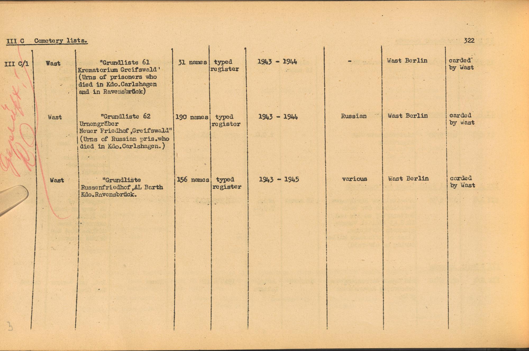 Band 2: Catalogue of Concentration Camp Records held by the International Tracing Service of the Allied High Commission for Germany, Volume II
