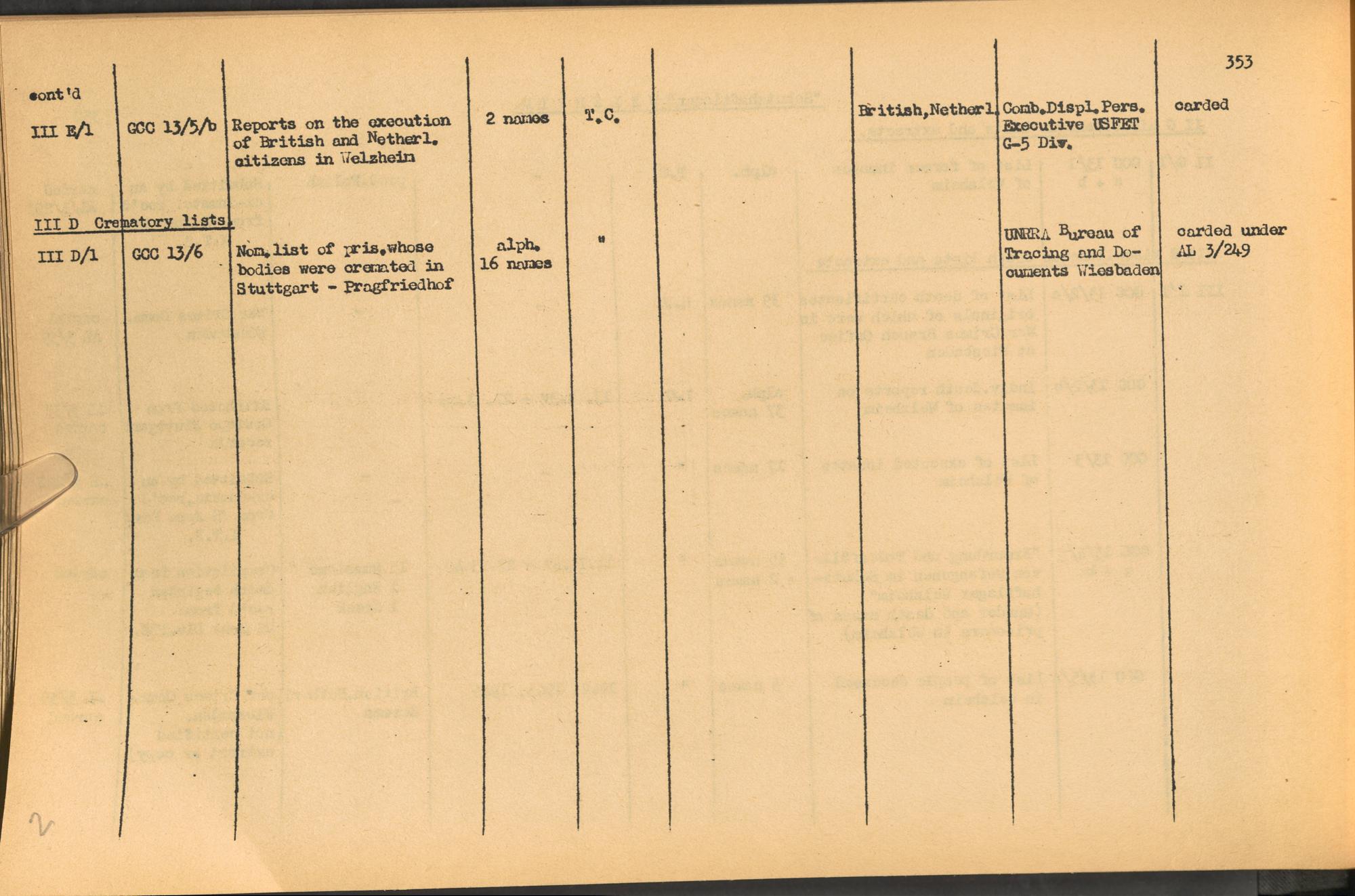 Band 2: Catalogue of Concentration Camp Records held by the International Tracing Service of the Allied High Commission for Germany, Volume II