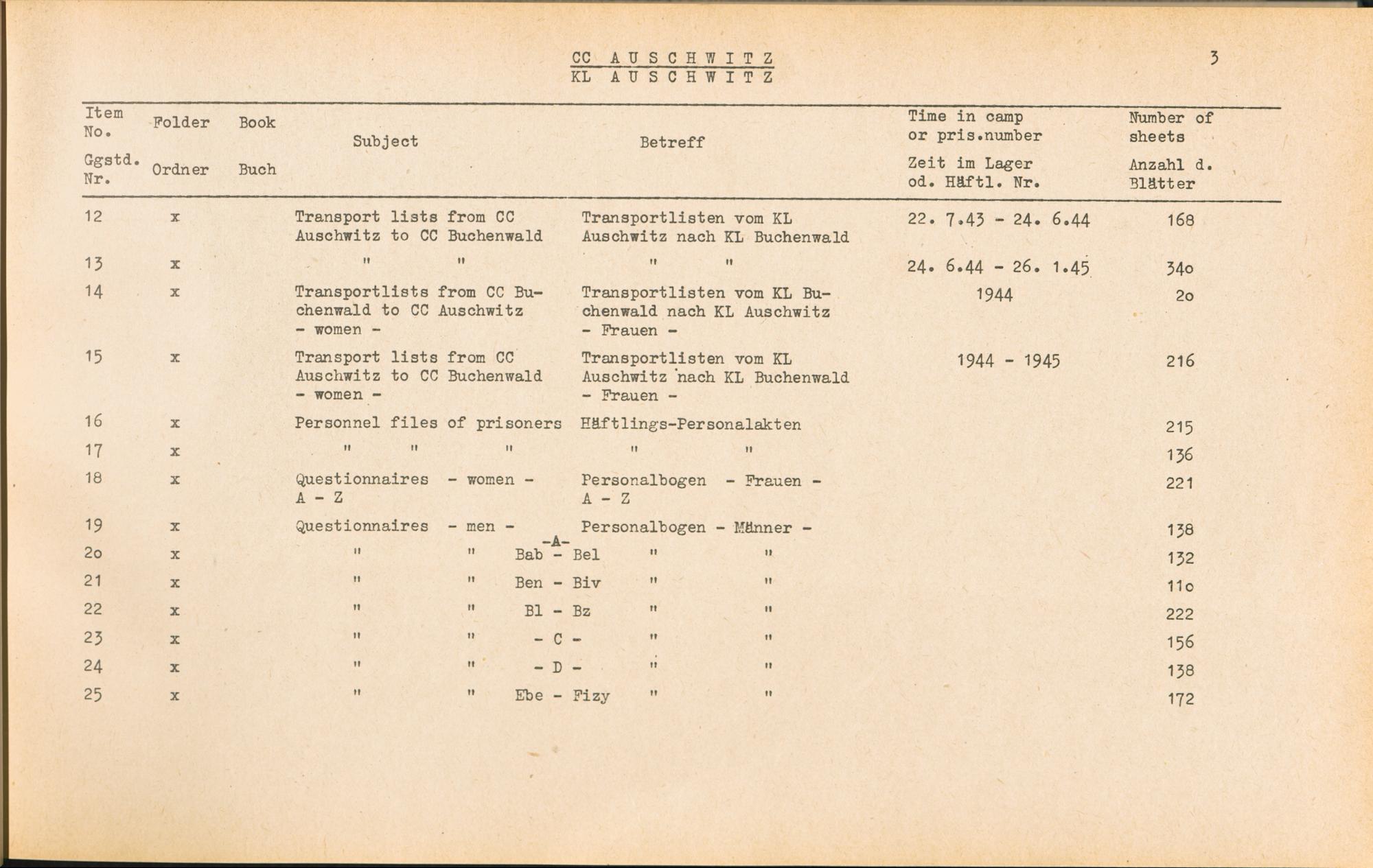 Band 1 (1954) Catalogue of Records held by the International Tracing Service of the Allied High Commission For Germany at Arolsen : War time records, Vol. I