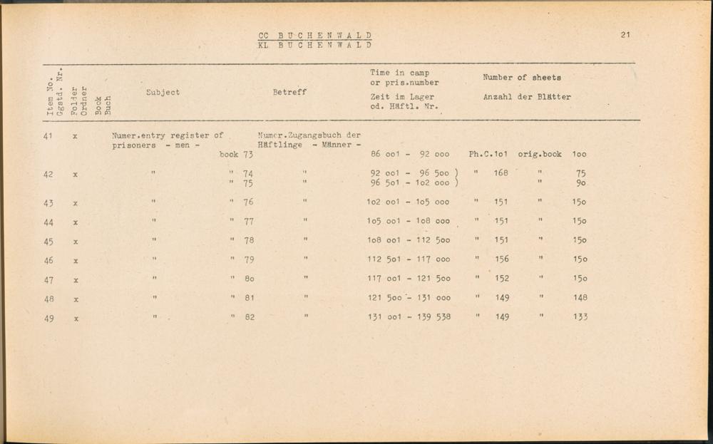 Band 1 (1954) Catalogue of Records held by the International Tracing Service of the Allied High Commission For Germany at Arolsen : War time records, Vol. I