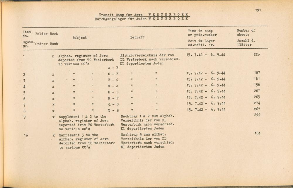 Band 1 (1954) Catalogue of Records held by the International Tracing Service of the Allied High Commission For Germany at Arolsen : War time records, Vol. I