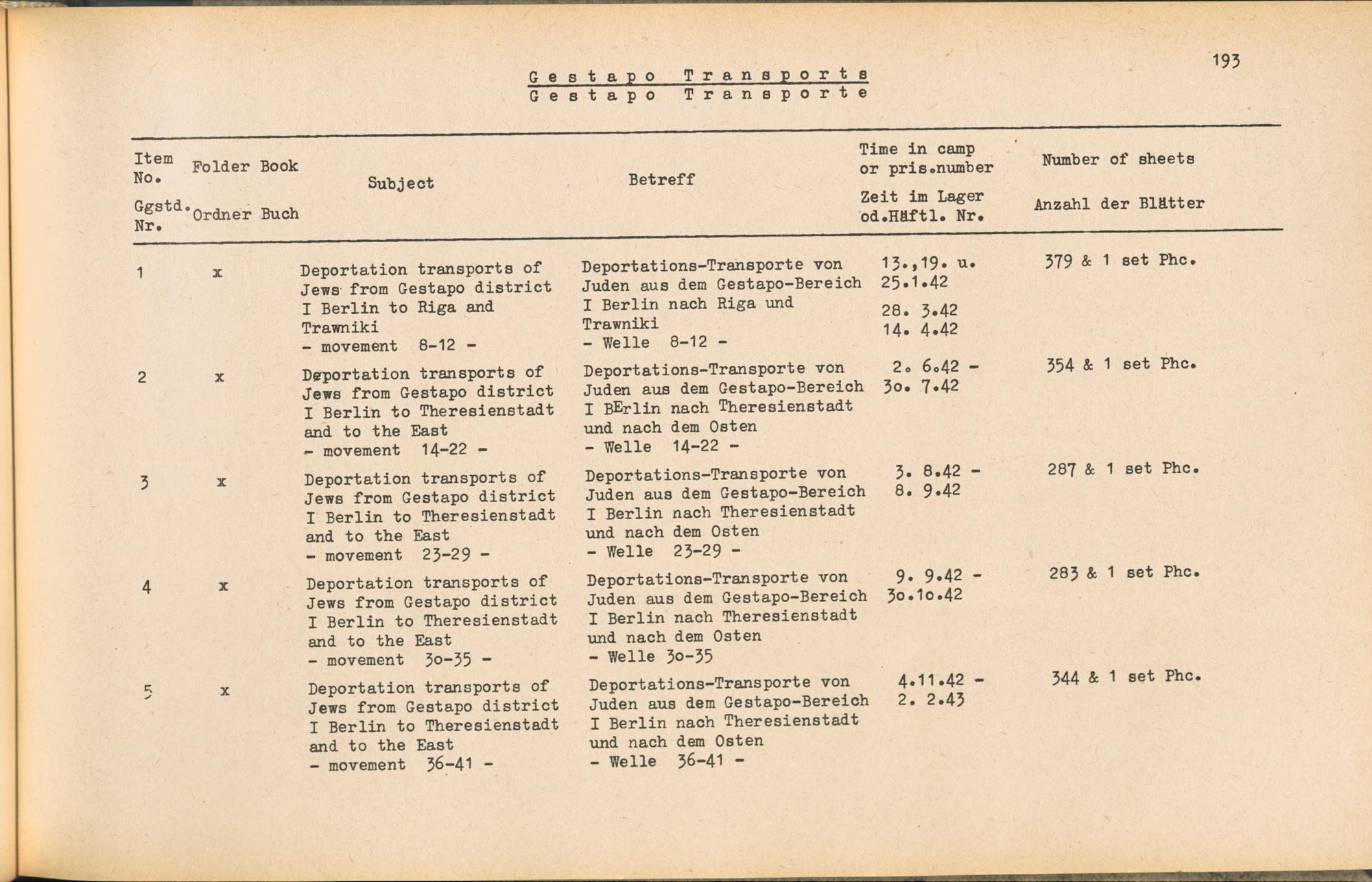 Band 1 (1954) Catalogue of Records held by the International Tracing Service of the Allied High Commission For Germany at Arolsen : War time records, Vol. I