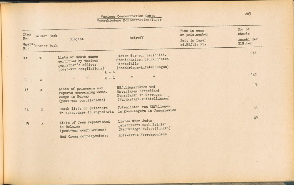 Band 1 (1954) Catalogue of Records held by the International Tracing Service of the Allied High Commission For Germany at Arolsen : War time records, Vol. I
