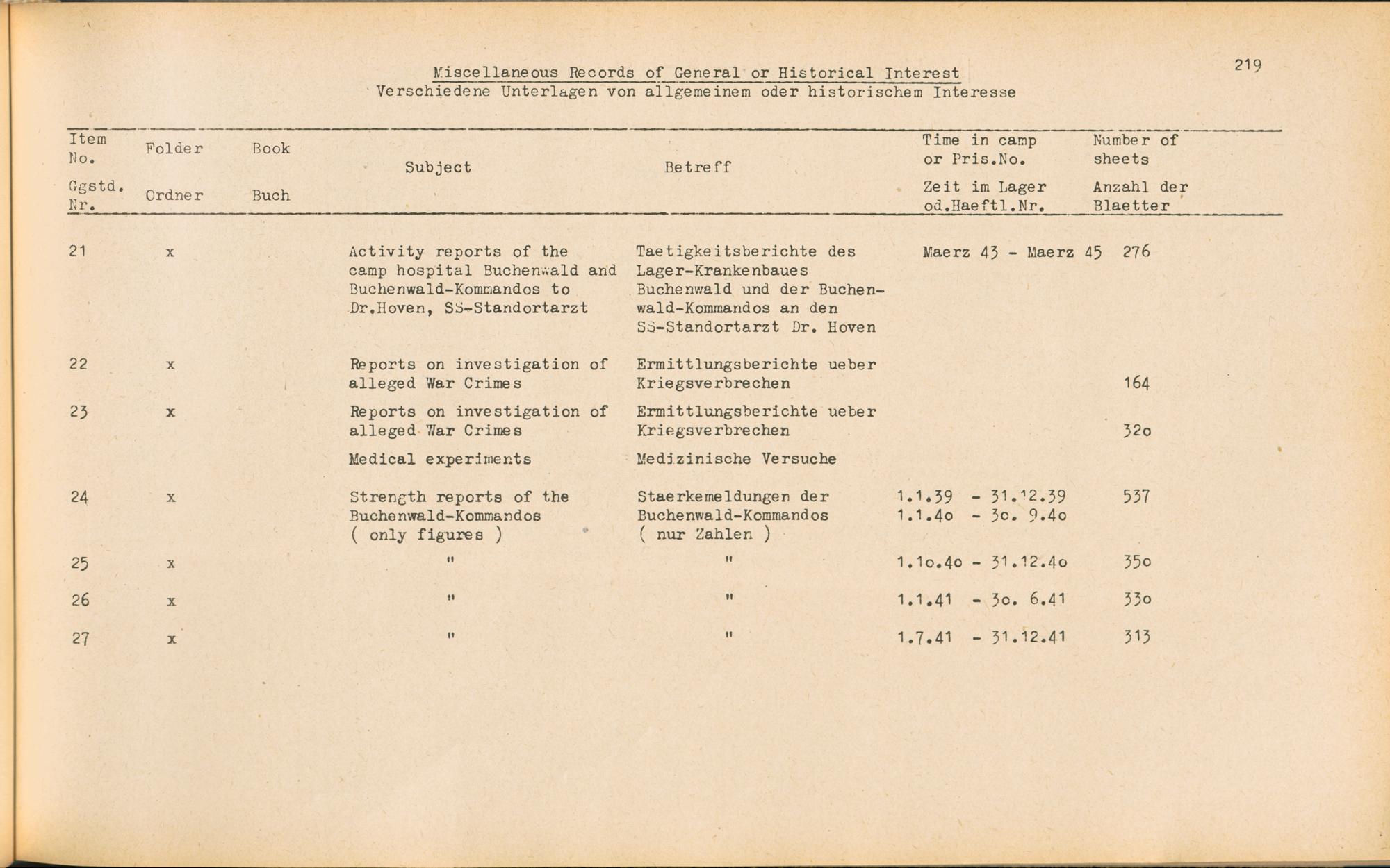 Band 1 (1954) Catalogue of Records held by the International Tracing Service of the Allied High Commission For Germany at Arolsen : War time records, Vol. I