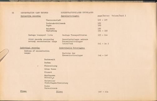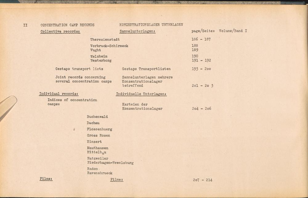 Catalogue of Records held by the International Tracing Service of the Allied High... Band 3. Catalogue of Records held by the International Tracing Service of the Allied... Table of Contents - Inhaltsverzeichnis