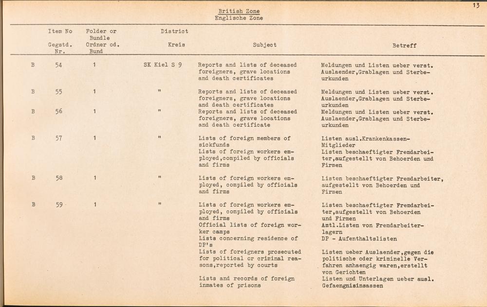 Catalogue of Records held by the International Tracing Service of the Allied High... Band 3. Catalogue of Records held by the International Tracing Service of the Allied... British Zone - Englische Zone
