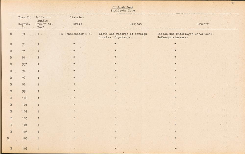 Catalogue of Records held by the International Tracing Service of the Allied High... Band 3. Catalogue of Records held by the International Tracing Service of the Allied... British Zone - Englische Zone