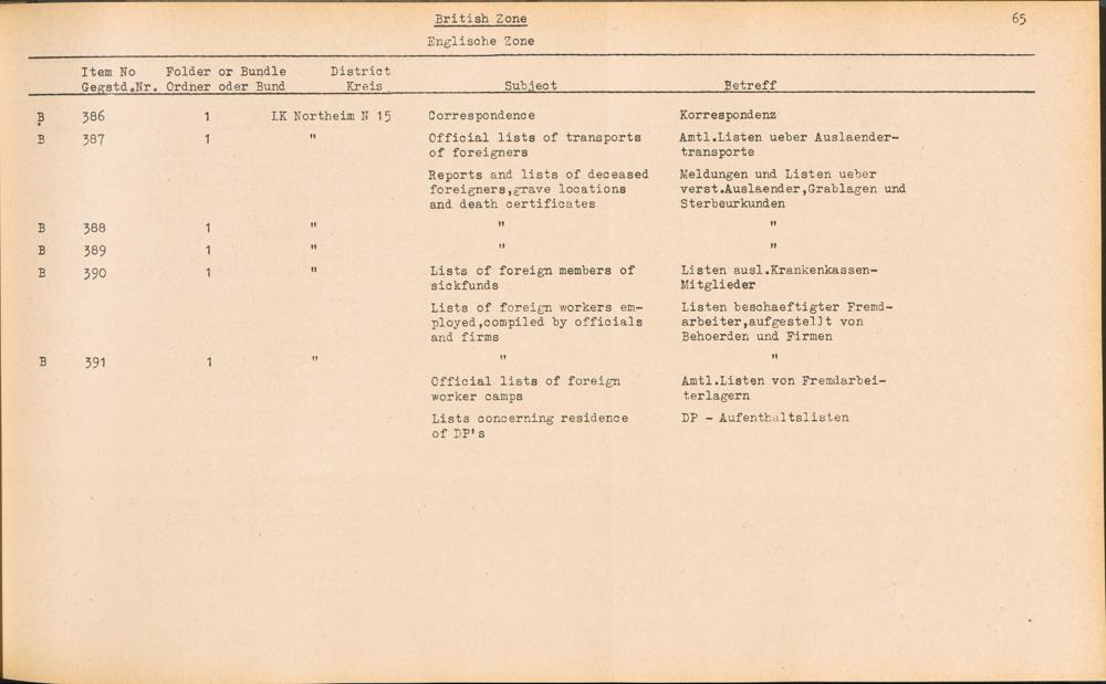 Catalogue of Records held by the International Tracing Service of the Allied High... Band 3. Catalogue of Records held by the International Tracing Service of the Allied... British Zone - Englische Zone