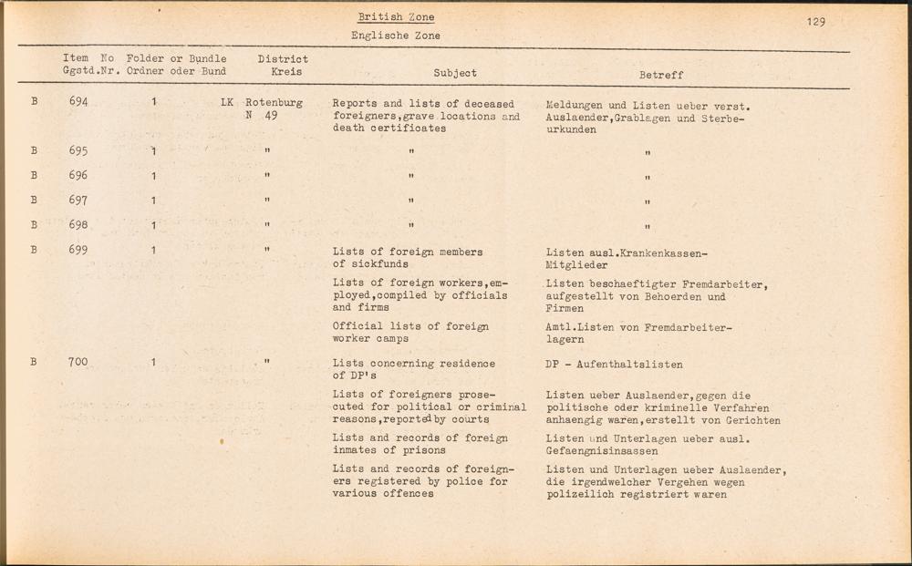 Catalogue of Records held by the International Tracing Service of the Allied High... Band 3. Catalogue of Records held by the International Tracing Service of the Allied... British Zone - Englische Zone