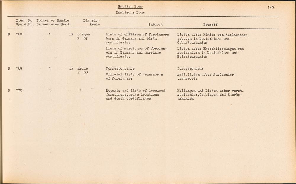 Catalogue of Records held by the International Tracing Service of the Allied High... Band 3. Catalogue of Records held by the International Tracing Service of the Allied... British Zone - Englische Zone
