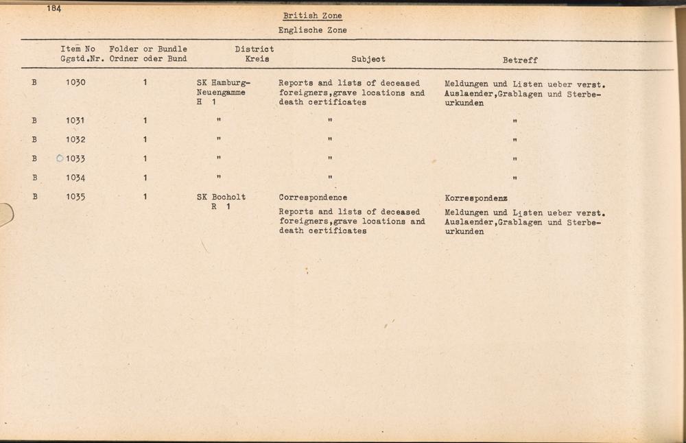 Catalogue of Records held by the International Tracing Service of the Allied High... Band 3. Catalogue of Records held by the International Tracing Service of the Allied... British Zone - Englische Zone