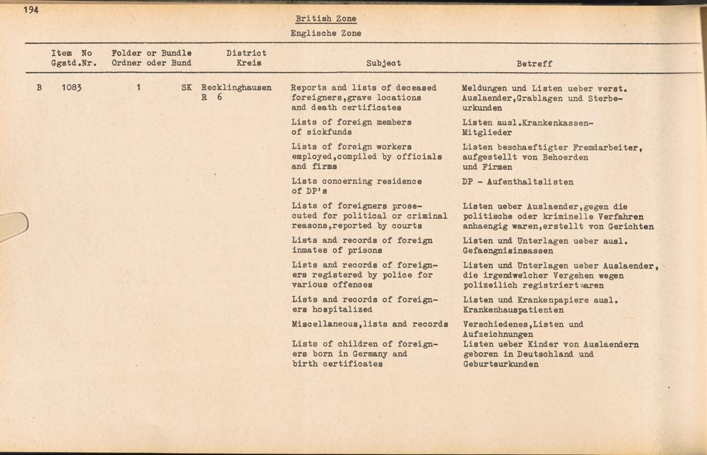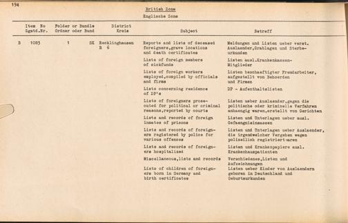 Catalogue of Records held by the International Tracing Service of the Allied High... Band 3. Catalogue of Records held by the International Tracing Service of the Allied... British Zone - Englische Zone