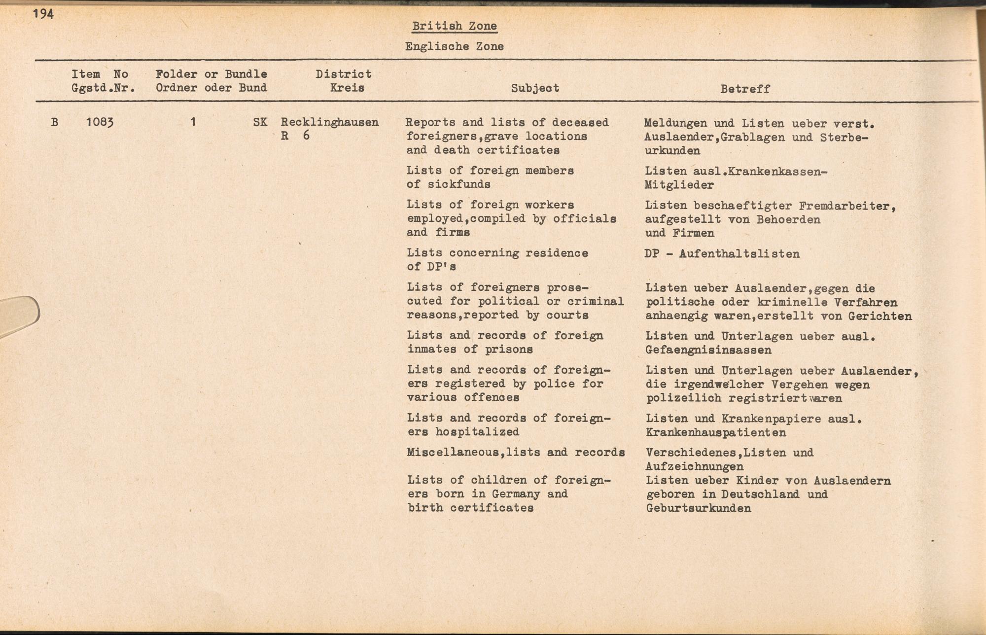 PDF Band 2. Catalogue of Records held by the International Tracing Service of the Allied High Commission For Germany at Arolsen