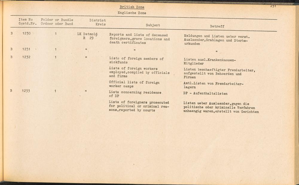 Catalogue of Records held by the International Tracing Service of the Allied High... Band 3. Catalogue of Records held by the International Tracing Service of the Allied... British Zone - Englische Zone