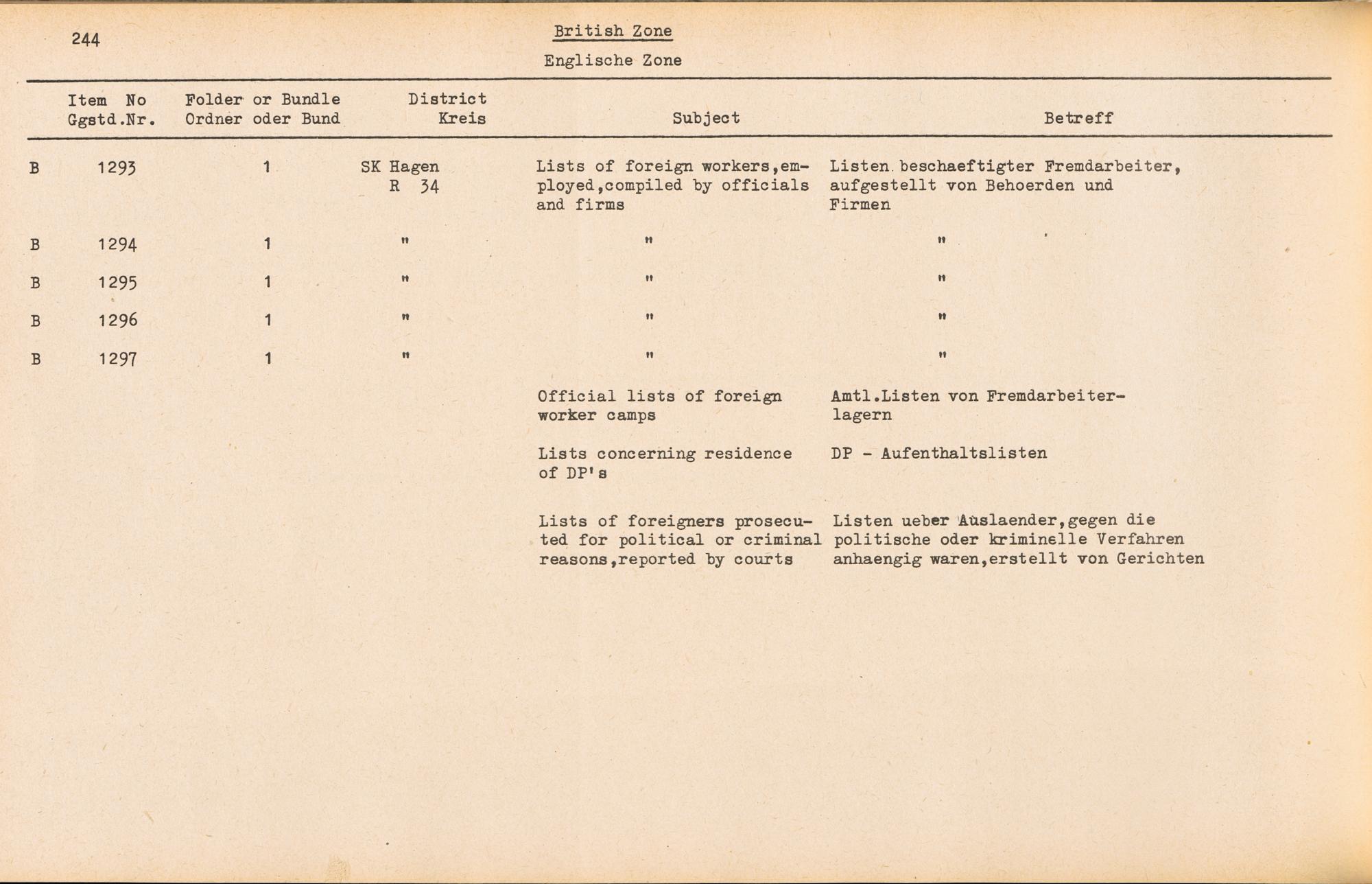PDF Band 2. Catalogue of Records held by the International Tracing Service of the Allied High Commission For Germany at Arolsen