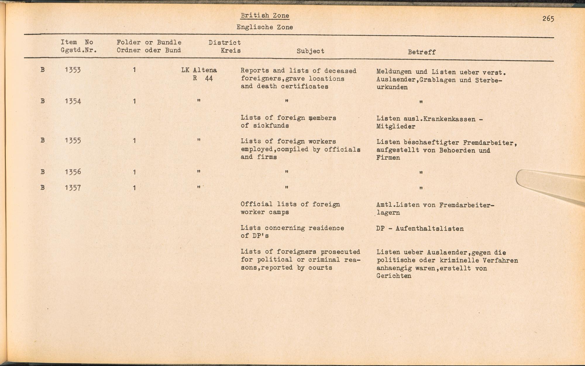 Catalogue of Records held by the International Tracing Service of the Allied High... Band 3. Catalogue of Records held by the International Tracing Service of the Allied... British Zone - Englische Zone