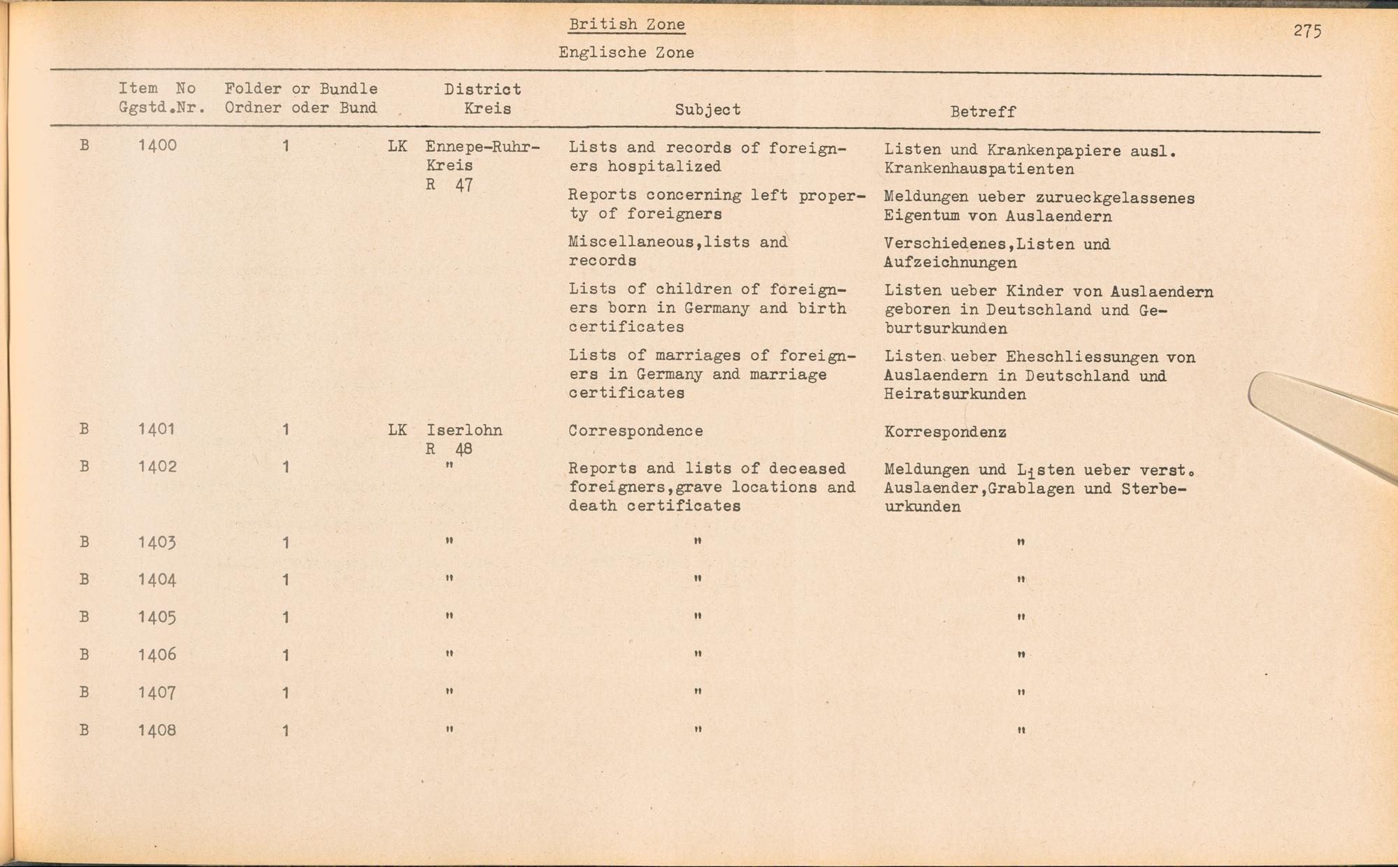 Catalogue of Records held by the International Tracing Service of the Allied High... Band 3. Catalogue of Records held by the International Tracing Service of the Allied... British Zone - Englische Zone