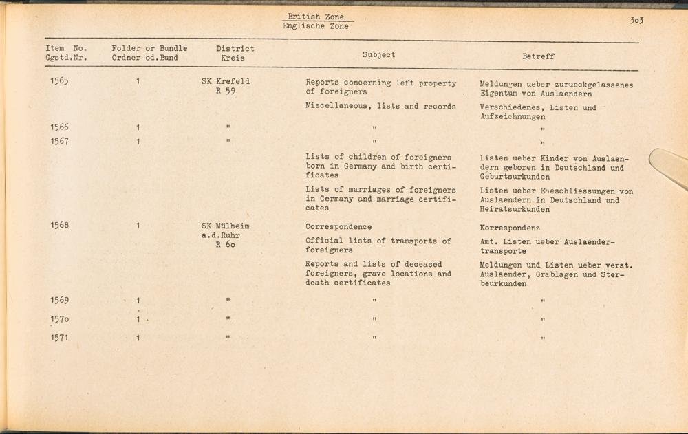 Catalogue of Records held by the International Tracing Service of the Allied High... Band 3. Catalogue of Records held by the International Tracing Service of the Allied... British Zone - Englische Zone