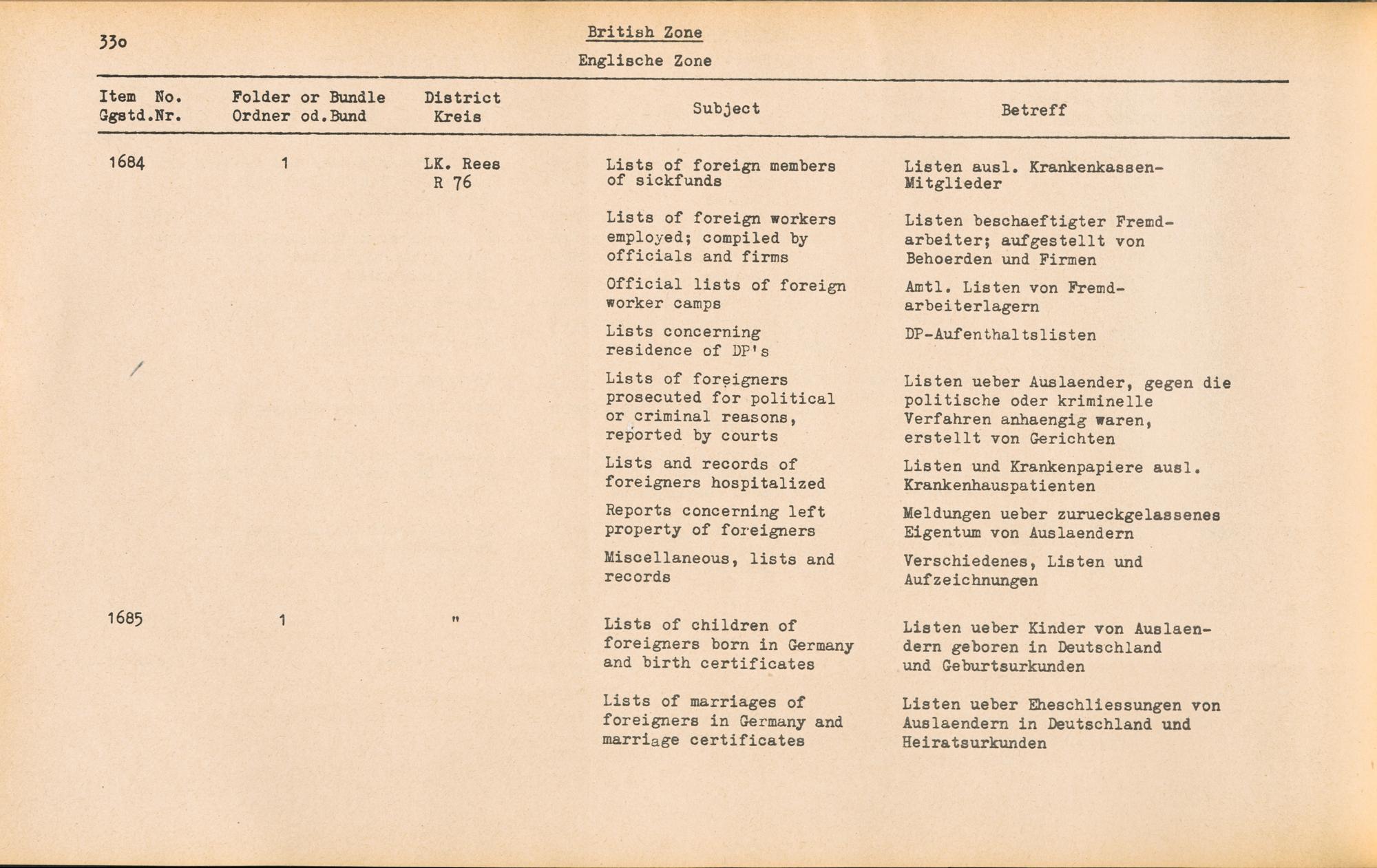 PDF Band 2. Catalogue of Records held by the International Tracing Service of the Allied High Commission For Germany at Arolsen