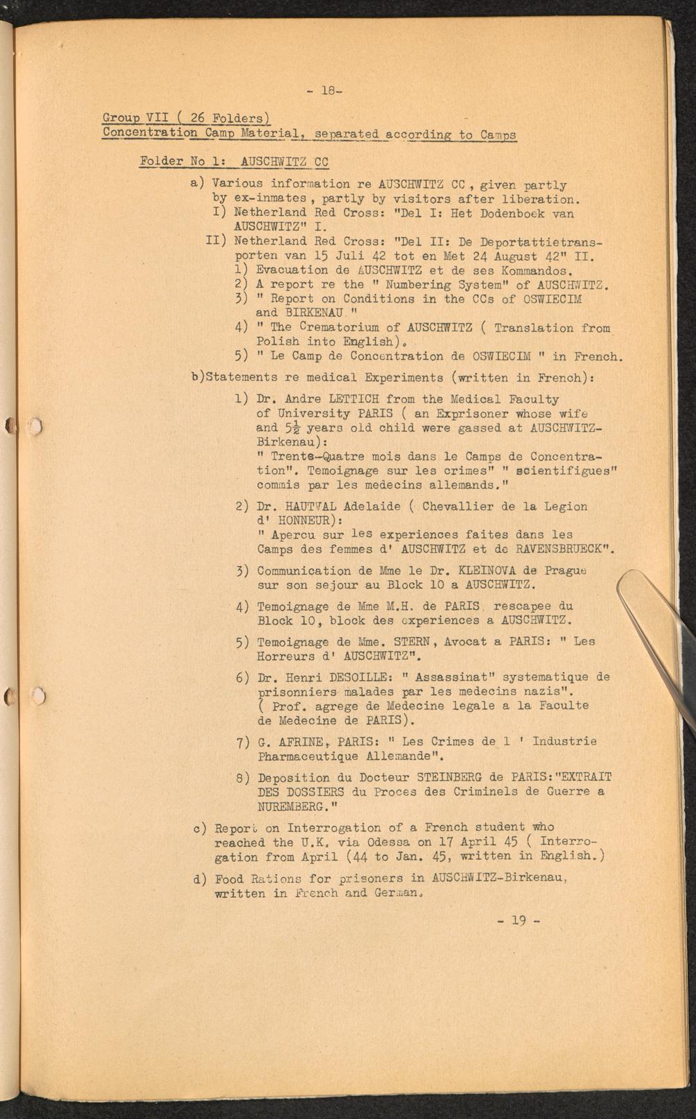 Catalogue of Miscellaneous Records of General or Historical Interest held by I.T.S / International Tracing Service
