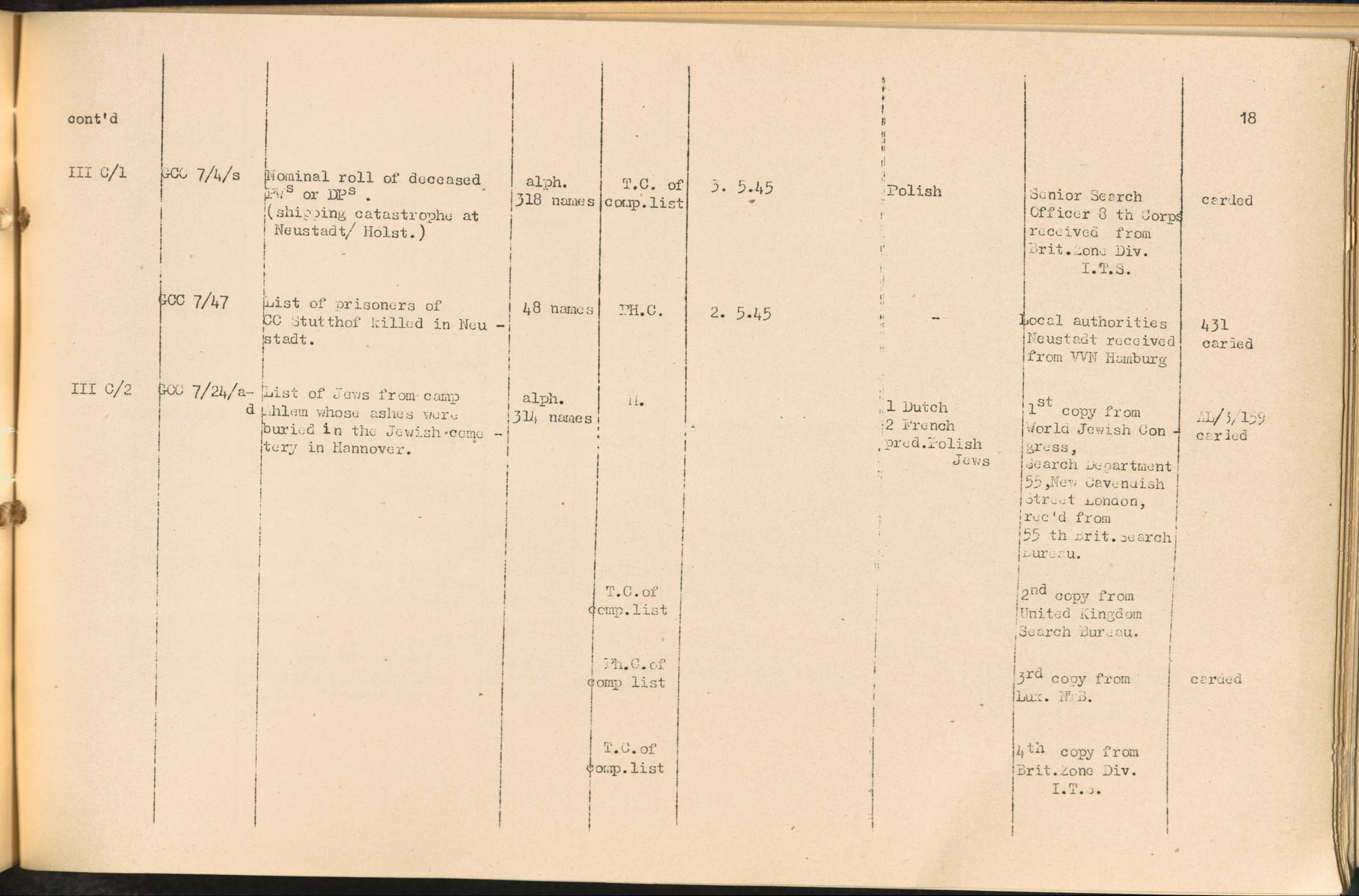 Accession - List, Gross-Rosen / International Refugee Organization (IRO)Accession - List, Mauthausen / International Refugee Organization (IRO)Accession - List, Mittelbau-Dora / International Refugee Organization (IRO)Accession - List, Neuengamme / International Refugee Organization (IRO)Accession - List, Sachsenhausen / International Refugee Organization (IRO)