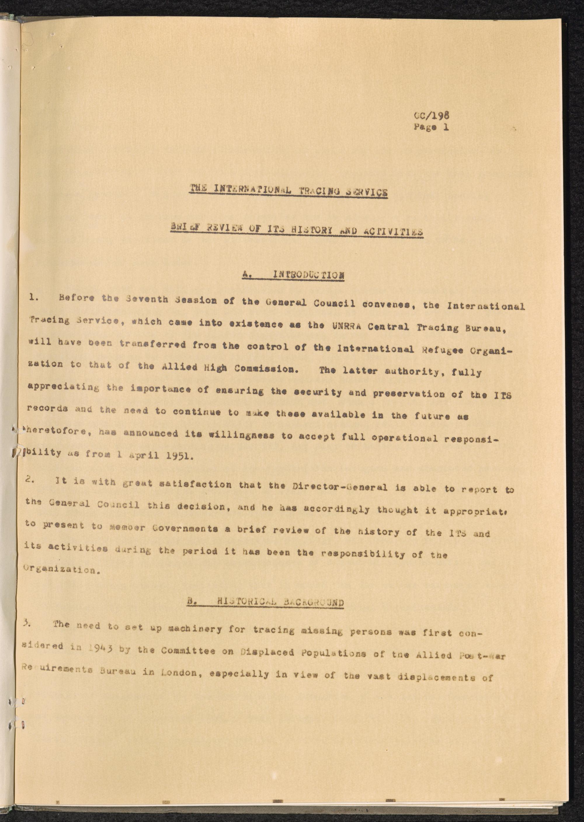 The International Tracing Service A. Introduction