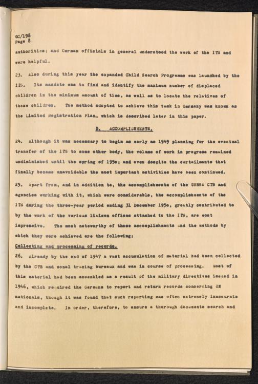 The International Tracing Service : Brief Review of ITS History and Activities / International Refugee Organization