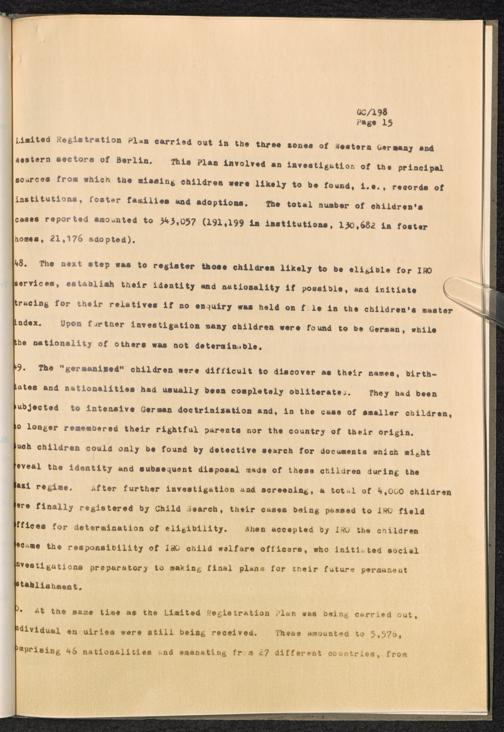 The International Tracing Service : Brief Review of ITS History and Activities / International Refugee Organization