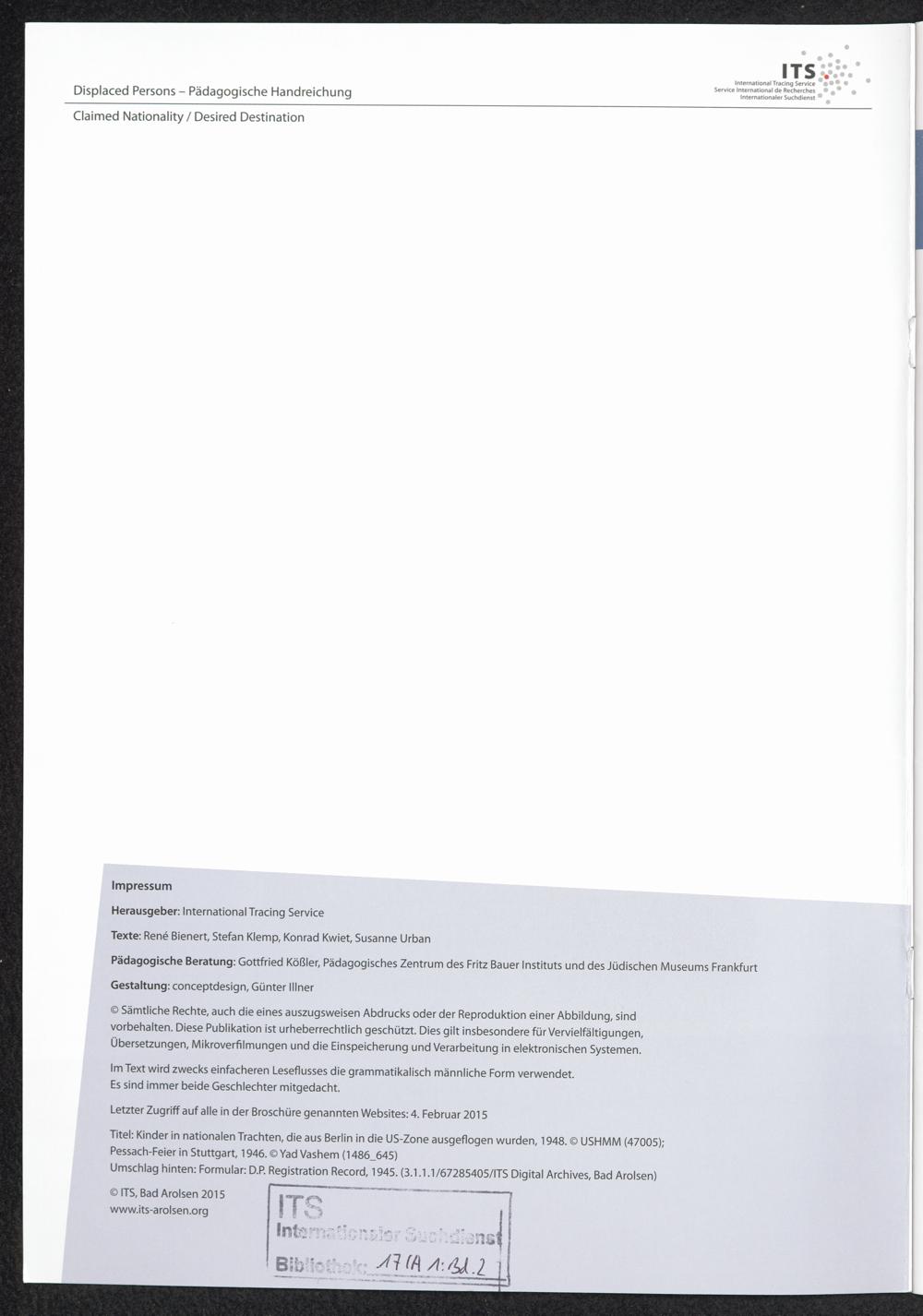 Als Nutzer dieses Portals sind Sie persönlich dafür verantwortlich, dass Sie das Recht auf die Privatsphäre und sonstige Gesetze und die schutzwürdigen Belange Dritter oder Betroffener sowie allgemein anerkannte Praktiken in Bezug auf personenbezogene Daten respektieren. Der ITS kann nicht für Veröffentlichungen Dritter, die durch die Nutzung seiner Sammlungen erscheinen, verantwortlich gemacht werden.