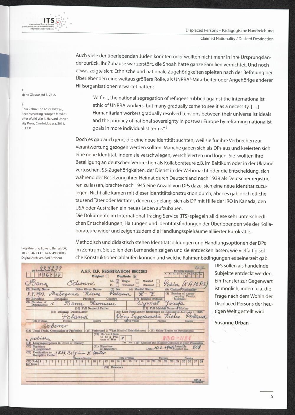 Pädagogische Handreichungen - Displaced Persons Heft 2. Claimed Nationality - Desired Destination Zum Geleit