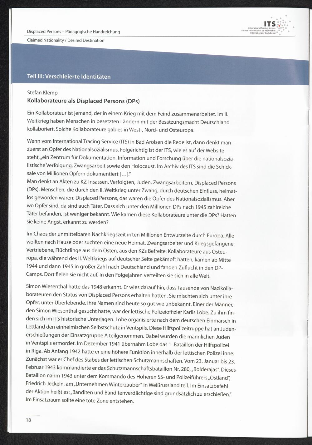 Pädagogische Handreichungen - Displaced Persons Heft 2. Claimed Nationality - Desired Destination Teil III: Verschleierte Identitäten